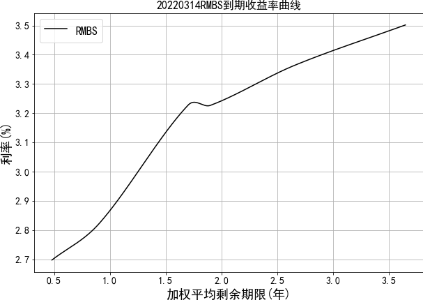 中债资信资产支持证券收益率曲线体系主要包括RMBS收益率曲线和汽车贷收益率曲线。RMBS收益率为市场首创,样本券包含市场主要RMBS发起机构如工行、建行、中行、农行等的产品。目前编制曲线的级别为中债资信AAA级,曲线类型为到期收益率曲线。编制方法为插值法。中债资信资产支持证券收益率曲线每工作日发布一次。