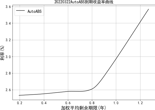 中债资信资产支持证券收益率曲线体系主要包括RMBS收益率曲线和汽车贷收益率曲线。RMBS收益率为市场首创,样本券包含市场主要RMBS发起机构如工行、建行、中行、农行等的产品。目前编制曲线的级别为中债资信AAA级,曲线类型为到期收益率曲线。编制方法为插值法。中债资信资产支持证券收益率曲线每工作日发布一次。