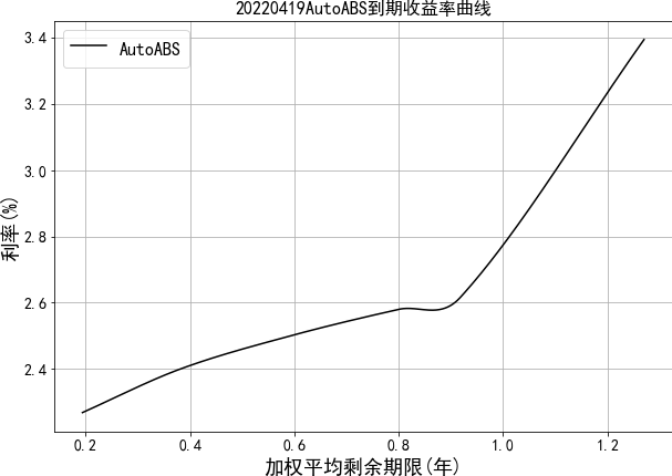 中债资信资产支持证券收益率曲线体系主要包括RMBS收益率曲线和汽车贷收益率曲线。RMBS收益率为市场首创,样本券包含市场主要RMBS发起机构如工行、建行、中行、农行等的产品。目前编制曲线的级别为中债资信AAA级,曲线类型为到期收益率曲线。编制方法为插值法。中债资信资产支持证券收益率曲线每工作日发布一次。