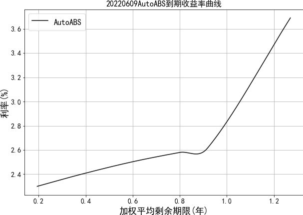 中债资信资产支持证券收益率曲线体系主要包括RMBS收益率曲线和汽车贷收益率曲线。RMBS收益率为市场首创,样本券包含市场主要RMBS发起机构如工行、建行、中行、农行等的产品。目前编制曲线的级别为中债资信AAA级,曲线类型为到期收益率曲线。编制方法为插值法。中债资信资产支持证券收益率曲线每工作日发布一次。