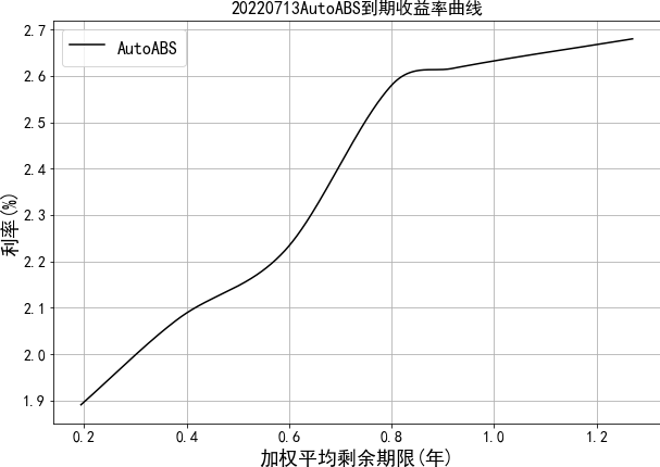 中债资信资产支持证券收益率曲线体系主要包括RMBS收益率曲线和汽车贷收益率曲线。RMBS收益率为市场首创,样本券包含市场主要RMBS发起机构如工行、建行、中行、农行等的产品。目前编制曲线的级别为中债资信AAA级,曲线类型为到期收益率曲线。编制方法为插值法。中债资信资产支持证券收益率曲线每工作日发布一次。