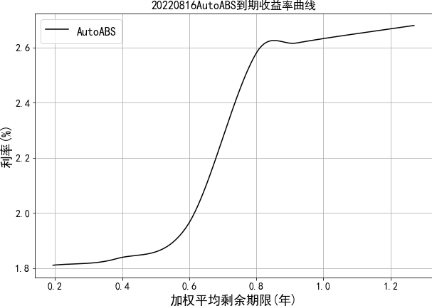 中债资信资产支持证券收益率曲线体系主要包括汽车贷收益率曲线。目前编制曲线的级别为中债资信AAA级,曲线类型为到期收益率曲线。编制方法为插值法。中债资信资产支持证券收益率曲线每工作日发布一次。