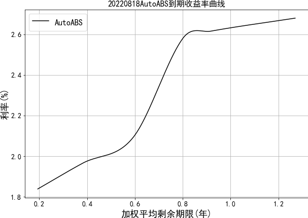 中债资信资产支持证券收益率曲线体系主要包括汽车贷收益率曲线。目前编制曲线的级别为中债资信AAA级,曲线类型为到期收益率曲线。编制方法为插值法。中债资信资产支持证券收益率曲线每工作日发布一次。