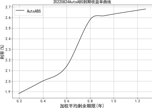 中债资信资产支持证券收益率曲线体系主要包括汽车贷收益率曲线。目前编制曲线的级别为中债资信AAA级,曲线类型为到期收益率曲线。编制方法为插值法。中债资信资产支持证券收益率曲线每工作日发布一次。