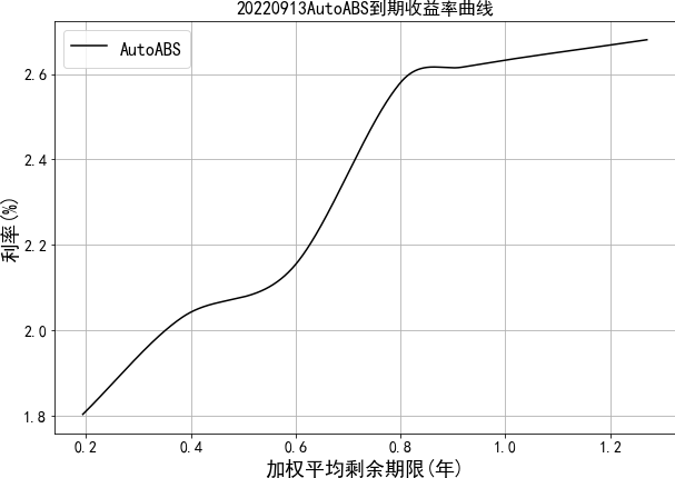 中债资信资产支持证券收益率曲线体系主要包括汽车贷收益率曲线。目前编制曲线的级别为中债资信AAA级,曲线类型为到期收益率曲线。编制方法为插值法。中债资信资产支持证券收益率曲线每工作日发布一次。