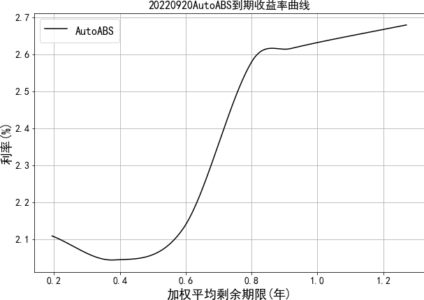 中债资信资产支持证券收益率曲线体系主要包括汽车贷收益率曲线。目前编制曲线的级别为中债资信AAA级,曲线类型为到期收益率曲线。编制方法为插值法。中债资信资产支持证券收益率曲线每工作日发布一次。
