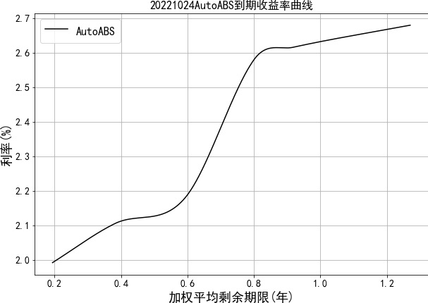 中债资信资产支持证券收益率曲线体系主要包括汽车贷收益率曲线。目前编制曲线的级别为中债资信AAA级,曲线类型为到期收益率曲线。编制方法为插值法。中债资信资产支持证券收益率曲线每工作日发布一次。