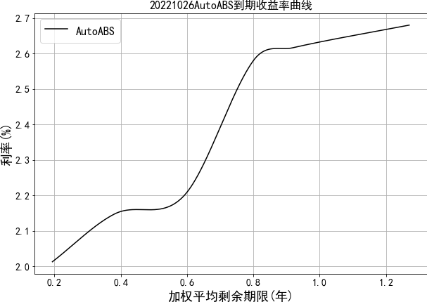 中债资信资产支持证券收益率曲线体系主要包括汽车贷收益率曲线。目前编制曲线的级别为中债资信AAA级,曲线类型为到期收益率曲线。编制方法为插值法。中债资信资产支持证券收益率曲线每工作日发布一次。