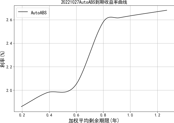 中债资信资产支持证券收益率曲线体系主要包括汽车贷收益率曲线。目前编制曲线的级别为中债资信AAA级,曲线类型为到期收益率曲线。编制方法为插值法。中债资信资产支持证券收益率曲线每工作日发布一次。