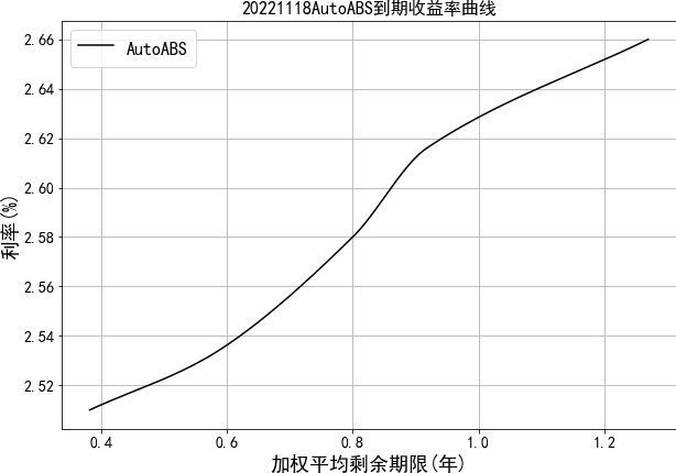 中债资信资产支持证券收益率曲线体系主要包括汽车贷收益率曲线。目前编制曲线的级别为中债资信AAA级,曲线类型为到期收益率曲线。编制方法为插值法。中债资信资产支持证券收益率曲线每工作日发布一次。