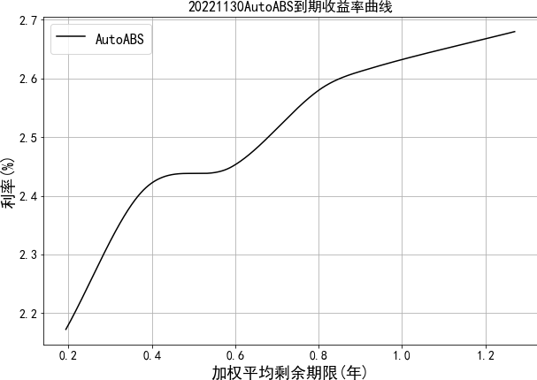 中债资信资产支持证券收益率曲线体系主要包括汽车贷收益率曲线。目前编制曲线的级别为中债资信AAA级,曲线类型为到期收益率曲线。编制方法为插值法。中债资信资产支持证券收益率曲线每工作日发布一次。