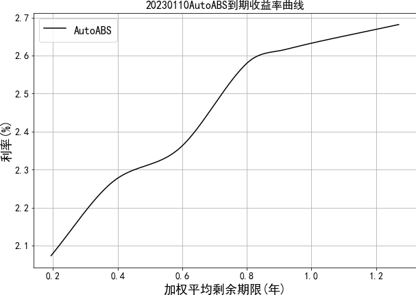 中债资信资产支持证券收益率曲线体系主要包括汽车贷收益率曲线。目前编制曲线的级别为中债资信AAA级,曲线类型为到期收益率曲线。编制方法为插值法。中债资信资产支持证券收益率曲线每工作日发布一次。