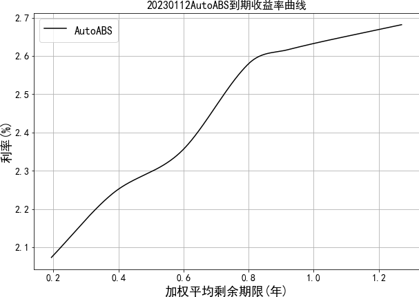中债资信资产支持证券收益率曲线体系主要包括汽车贷收益率曲线。目前编制曲线的级别为中债资信AAA级,曲线类型为到期收益率曲线。编制方法为插值法。中债资信资产支持证券收益率曲线每工作日发布一次。