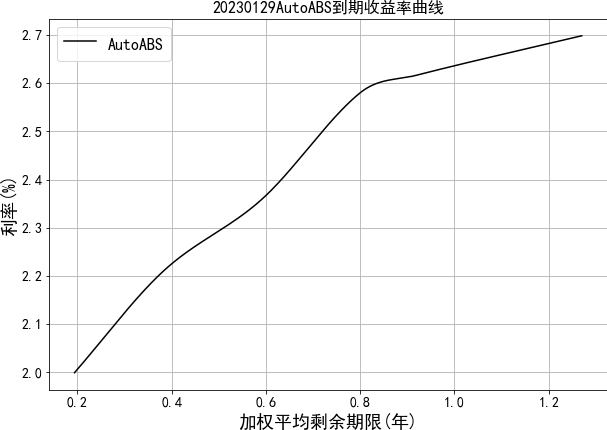 中债资信资产支持证券收益率曲线体系主要包括汽车贷收益率曲线。目前编制曲线的级别为中债资信AAA级,曲线类型为到期收益率曲线。编制方法为插值法。中债资信资产支持证券收益率曲线每工作日发布一次。