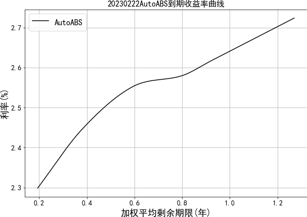 中债资信资产支持证券收益率曲线体系主要包括汽车贷收益率曲线。目前编制曲线的级别为中债资信AAA级,曲线类型为到期收益率曲线。编制方法为插值法。中债资信资产支持证券收益率曲线每工作日发布一次。