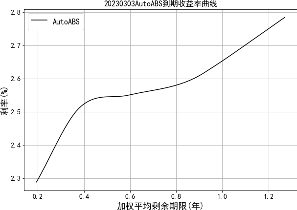 中债资信资产支持证券收益率曲线体系主要包括汽车贷收益率曲线。目前编制曲线的级别为中债资信AAA级,曲线类型为到期收益率曲线。编制方法为插值法。中债资信资产支持证券收益率曲线每工作日发布一次。