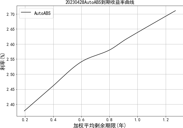 中债资信资产支持证券收益率曲线体系主要包括汽车贷收益率曲线。目前编制曲线的级别为中债资信AAA级,曲线类型为到期收益率曲线。编制方法为插值法。中债资信资产支持证券收益率曲线每工作日发布一次。